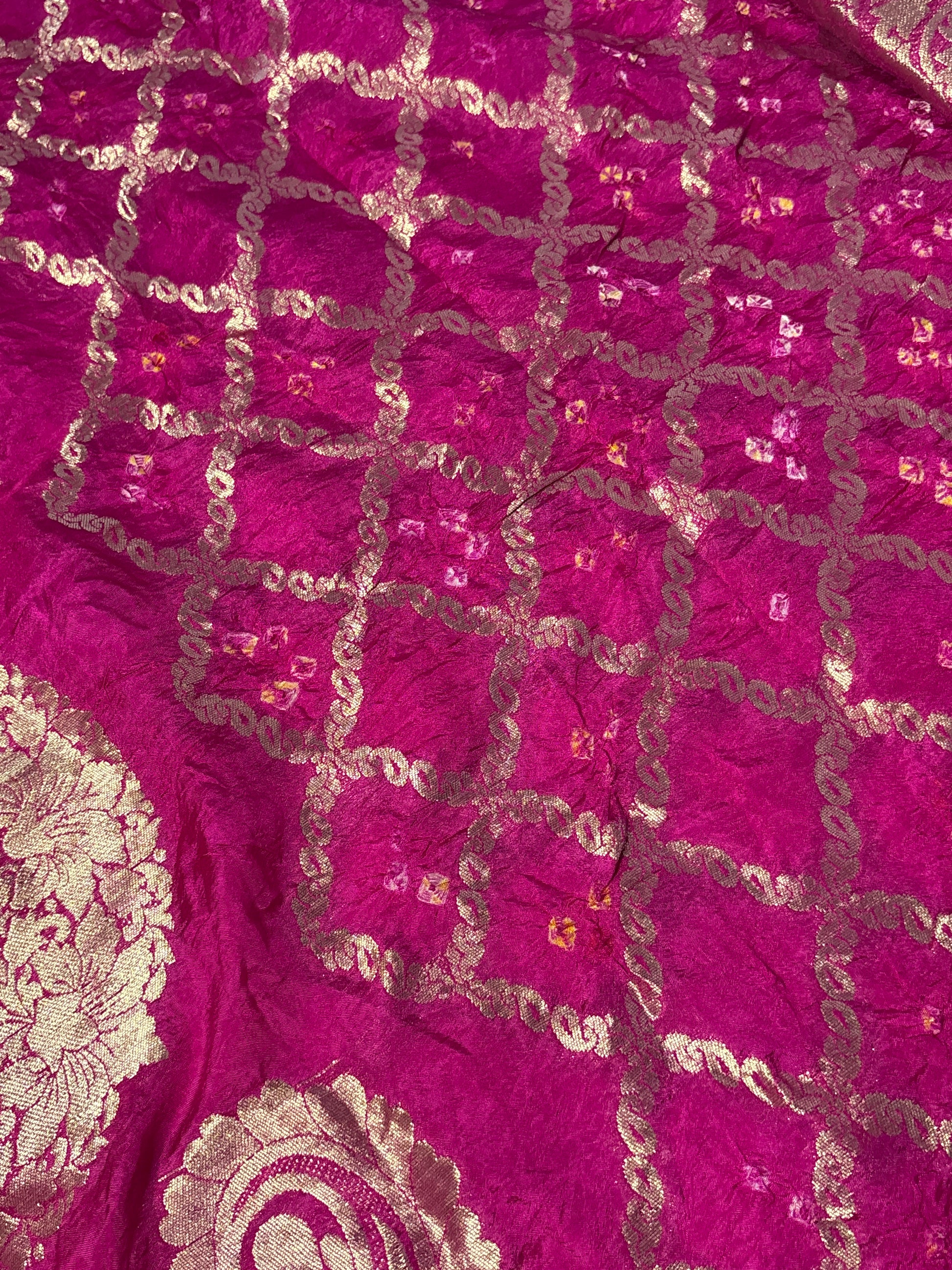 Deep Magenta with antique gold Detailing Paisley Bandhej Bandhani Dupatta